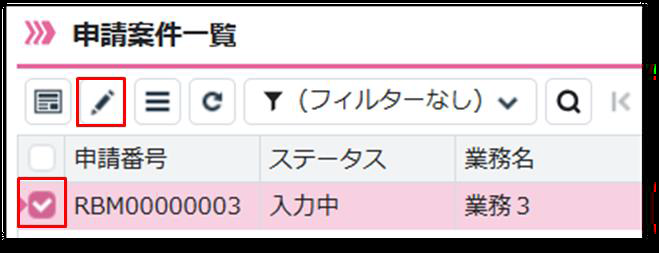 申請業務のリスト業務名のチェックボックスにチェックを入れ、編集アイコンをクリックすると入力画面が開きます。