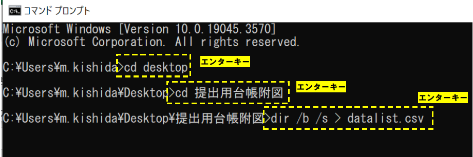 図 25 フォルダへの移動とファイル一リストのcsv出力