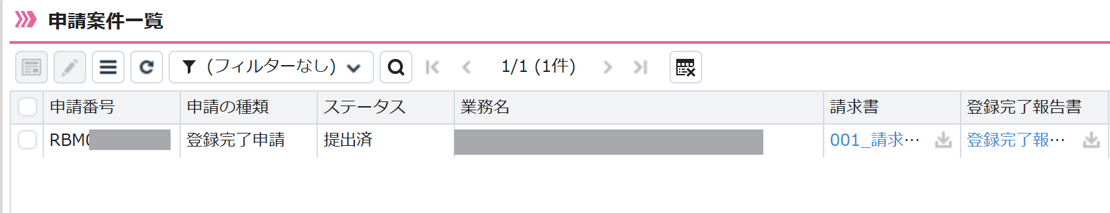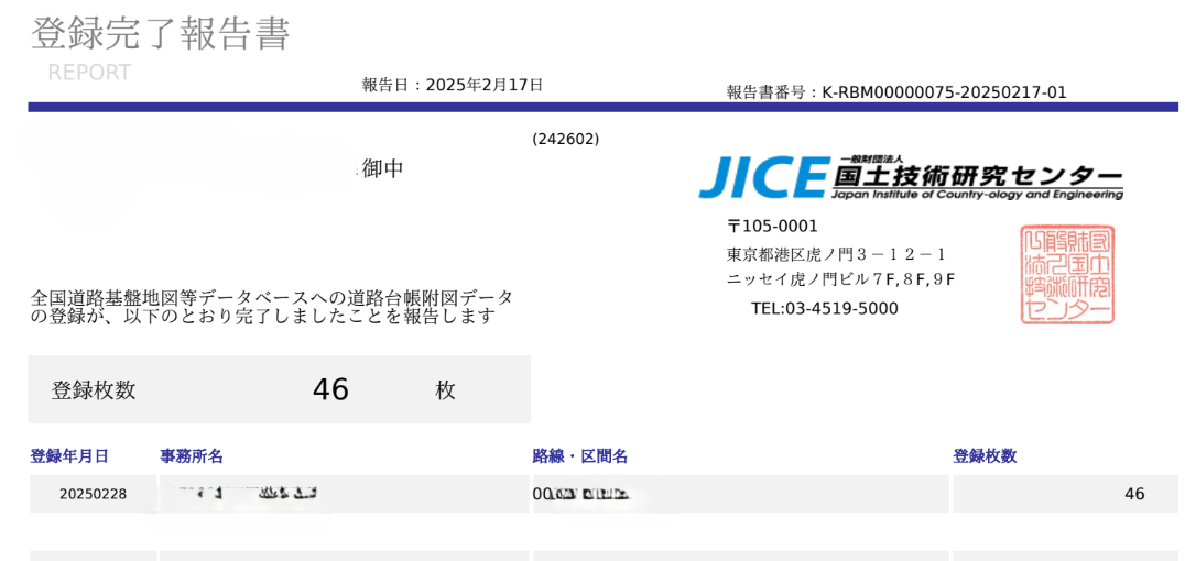 請求書と同時に、以下に示すような登録完了報告書もあわせてダウンロードできます。発注者よりデータベースへの登録完了の証明を求められた際にご利用ください。